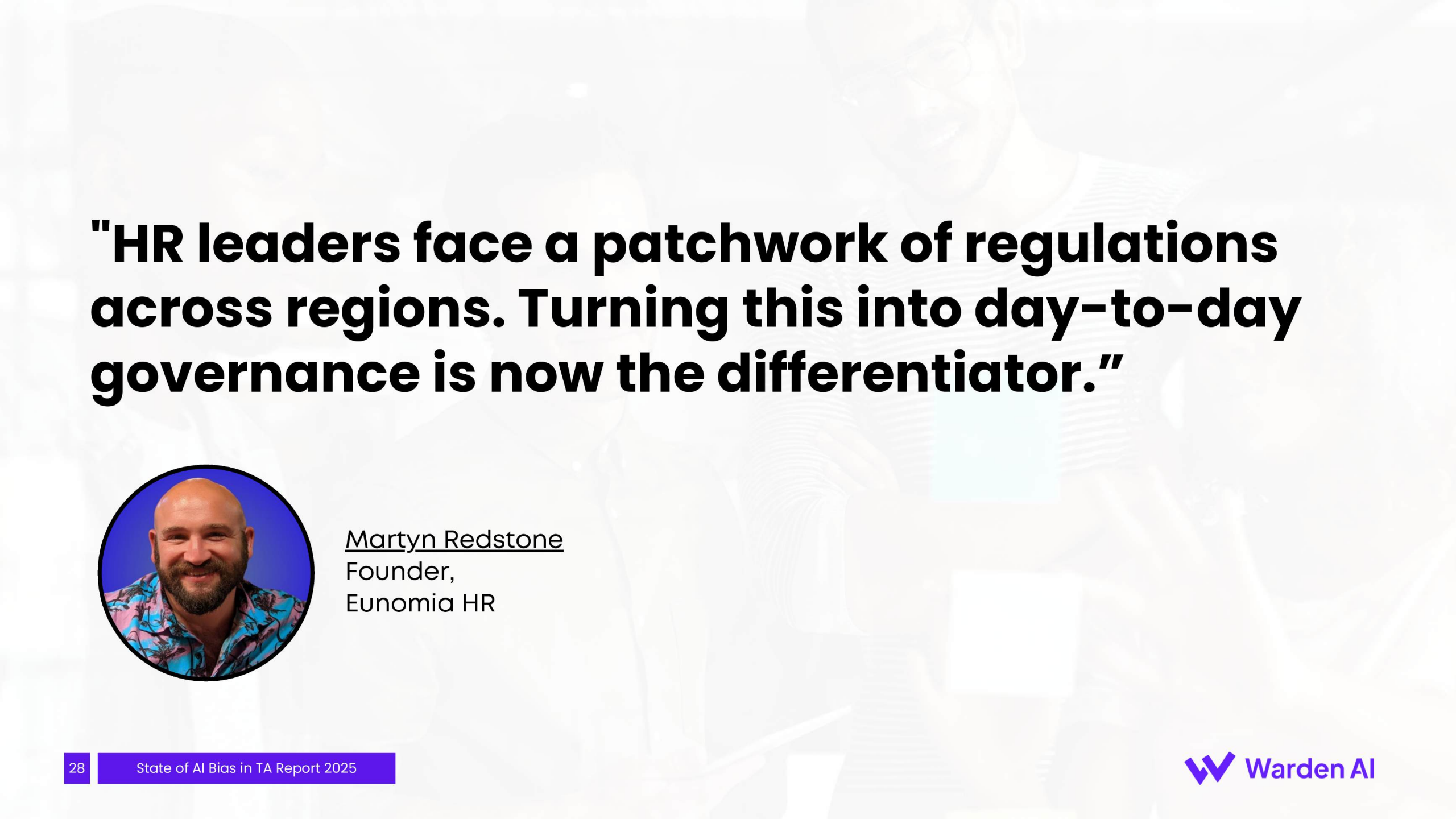 面对日益增长的监管压力和市场期望,供应商正在加速构建负责任的人工智能治理框架。超过70%的供应商已开始发布人工智能文档,但仅有35%会公开审计结果,而向终端用户提供退出机制的更是低至15%。更为严峻的是,40%的供应商或人力资源团队并未向求职者明确告知其正在使用人工智能。这种透明度的缺失,尤其是在审计范围上,95%的审计仅局限于性别和种族,忽略了年龄等其他受保护特征,构成了潜在的合规盲区。
