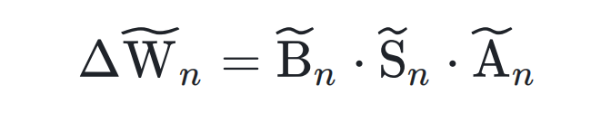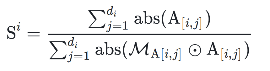 2. 参数互补缩放:接着设计一个对角矩阵 S 来弥补因为参数修剪带来的性能损失。文中观察到 LoRA 矩阵 A 和 B 的不对称性(A 呈分布均匀,B 呈高斯分布),从 A 矩阵的统计特性中构建一个对角矩阵 S,对角元素根据下式计算得到: