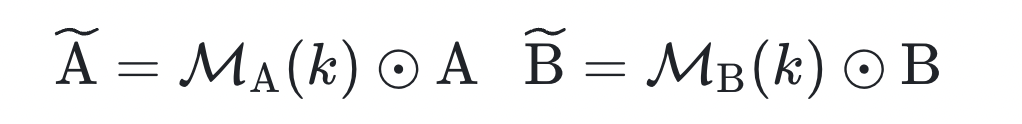 因此第一步,根据参数的绝对大小(Magnitude)决定无效参数,将每个 LoRA 模块中排名后 k% 的小参数直接置零的方式: